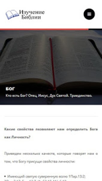 Библия - Изучение Библии är en gratis utbildningsapp som fokuserar på att hjälpa användare att studera Bibeln genom olika teman. Appen erbjuder en mängd resurser och information om viktiga ämnen som frälsning, Guds natur, och bön, vilket gör den till ett värdefullt verktyg för både nya och erfarna läsare av Skriften. Med tydliga och koncisa förklaringar täcker appen centrala koncept som treenigheten, vattendop och den kristna identiteten i Kristus.